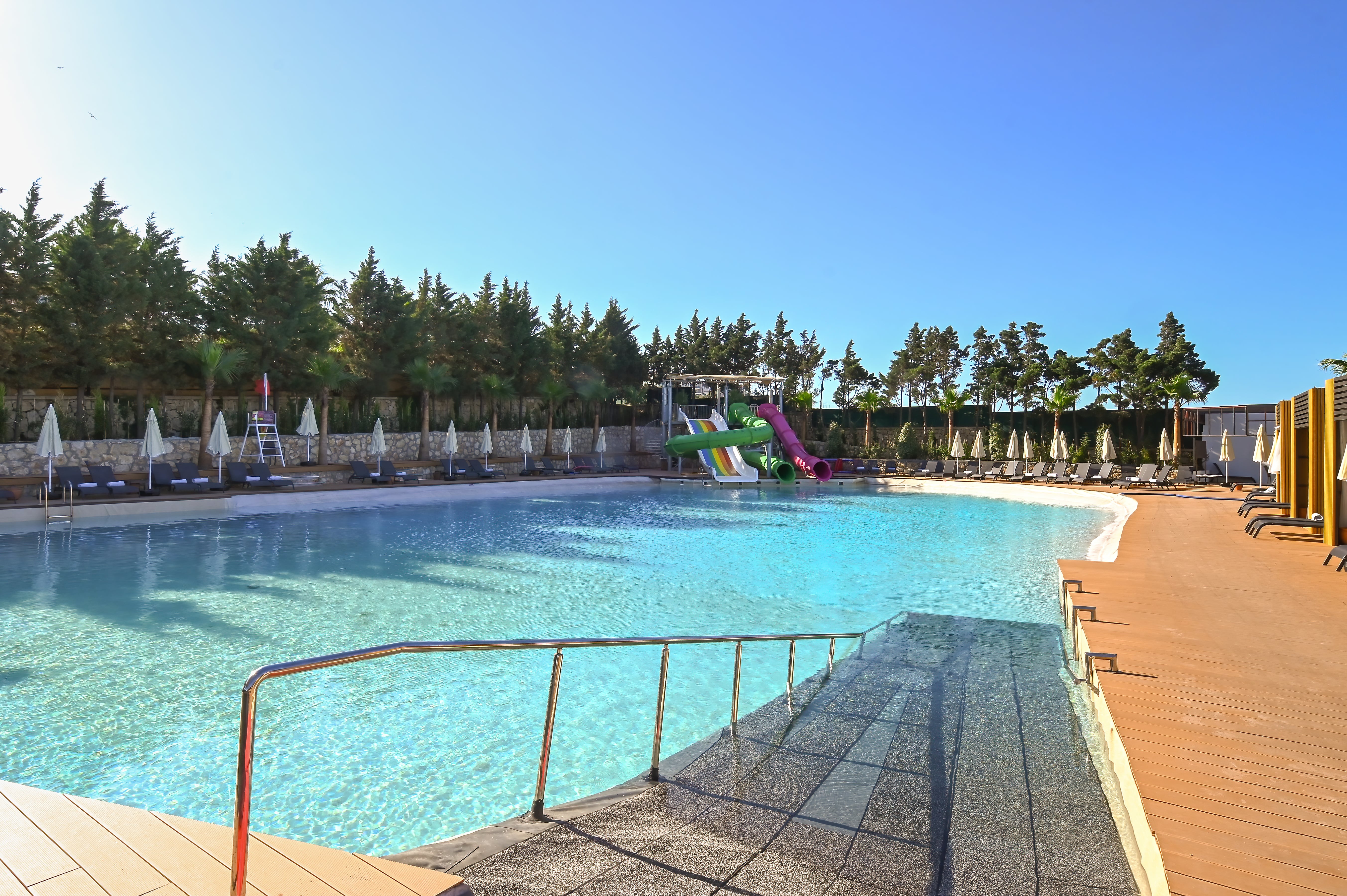 Royal Teos Thermal Resort Clinic & Spa içerisinde, tamamen kadınlara özel tasarlanmış bir aquapark, plaj ve havuz alanı sizi bekliyor. Bu eşsiz alanda, heyecan verici su kaydırakları ve eğlenceli aktivitelerle dolu aquapark, keyifli bir gün geçirmenize olanak tanırken, plaj ve havuzda sakin bir atmosferde dinlenme imkanını sunuyor. Ayrıca, tüm bu aktivitelerin yanı sıra alkolsüz içecekler ve nefis atıştırmalıklar, konuklarımızın günübirlik kullanımları için özel olarak hazırlanmış alanlarda sunulmaktadır. Bu benzersiz alan, hem enerjik hem de huzurlu bir gün geçirmek isteyen kadın misafirlerimize unutulmaz bir deneyim sunuyor.